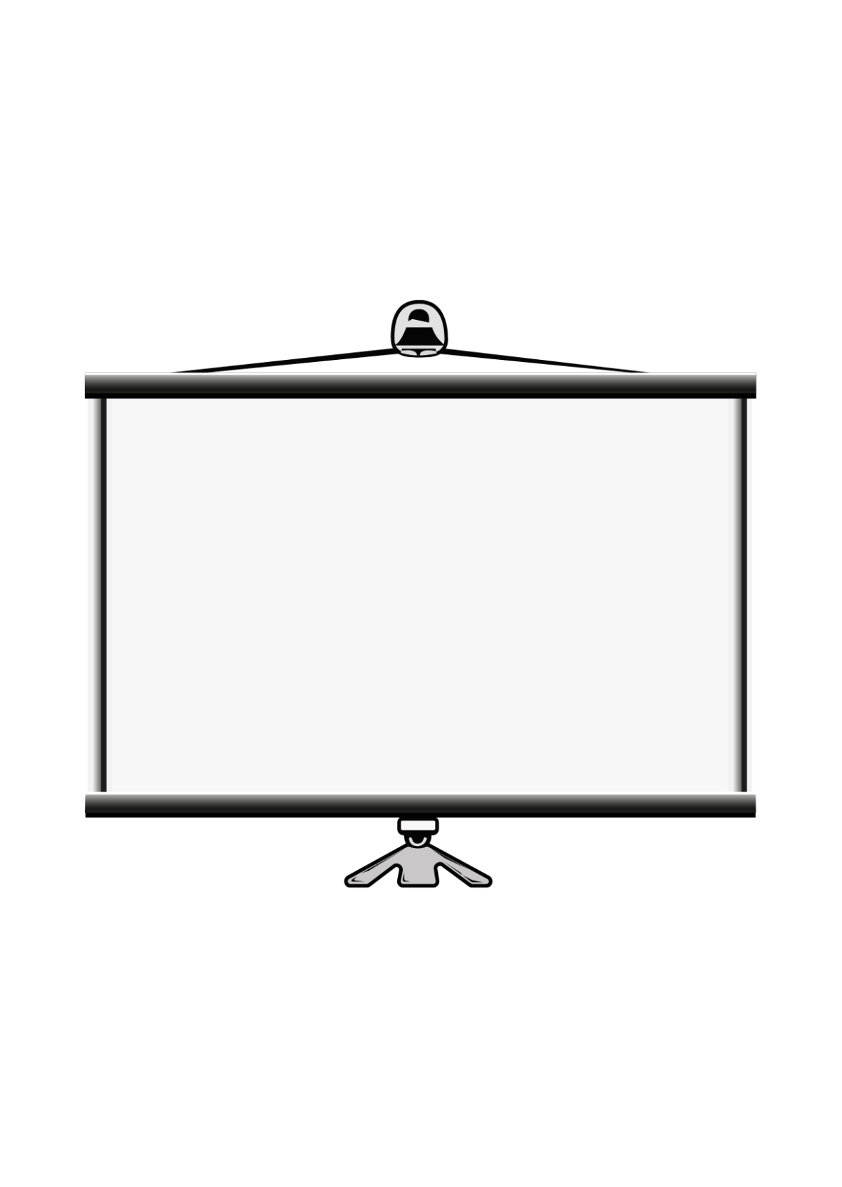 Projectiescherm op statief van 2 meter breed. Bij ons overbodig geworden door komst van het digiboard.